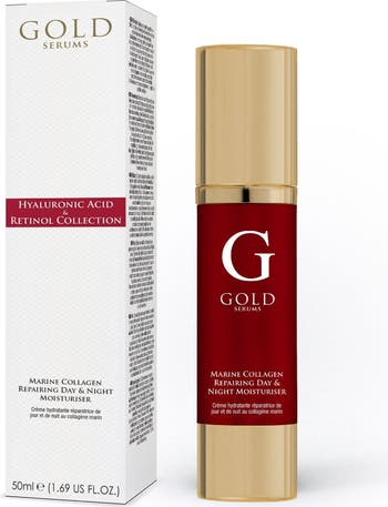 Discover the Gold Serums Marine Collagen Repairing Day & Night Moisturiser, designed to provide deep hydration and enhance your skin's texture for a smooth, radiant complexion. Formulated with soluble collagen, coconut oil, and aloe vera, this luxurious moisturiser nourishes and plumps the skin, making it suitable for all skin types, including sensitive skin. Whether used in the morning or evening, it effectively strengthens the skin barrier, ensuring a dewy glow throughout the day. Free from parabens, sulfates, and artificial fragrances, this clean beauty product is your daily solution for dry, uneven skin, helping to revive radiance and combat fatigue. Apply generously to clean, dry skin after cleansing and experience the transformative benefits of this enriching moisturiser. Shop now to achieve healthier, glowing skin!