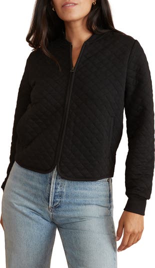 A step up from your sweatshirt, this knit bomber offers soft, feel-good comfort with heavyweight, jacquard-quilted fabric in a fitted silhouette.