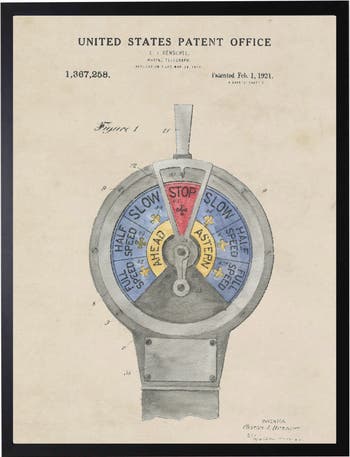This vintage-inspired print, framed in a black wooden frame, features a marine telegraph patent. Sized at 16 inches by 20 inches, this made in the USA frame makes for a beautiful addition to any wall.