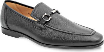 A softly squared toe lends modern aesthetics to a sophisticated loafer crafted from crinkled Spanish leather highlighted by polished bit hardware.