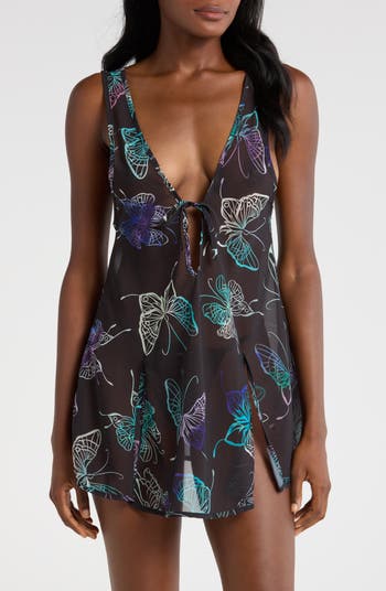 Equal parts sweet and sultry, this silky babydoll gets a little edgy with flirty slits and a tie front.