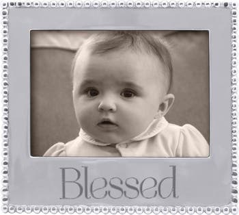 Some blessings count more than others; display photos of your dearest ones in this gleaming frame captioned with 'Blessed' and traced in beading.