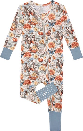 An adorable floral print brings abundant charm to this zip footie made from buttery-soft fabric and finished with grips on the feet for steady standing and stepping.
