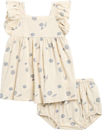 Your little one will look their sweetest in this ruffle-trimmed dress made of naturally breathable cotton and paired with matching bloomers.