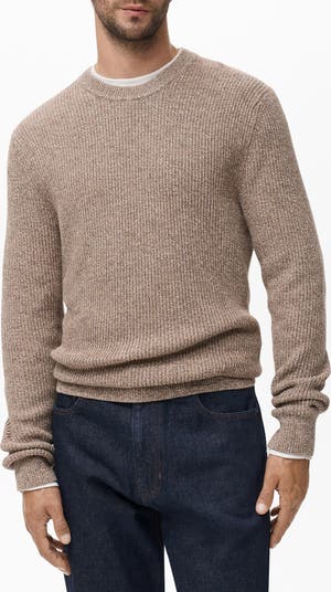 MANGO Marled Cotton Crewneck Sweater, Main, color, Beige