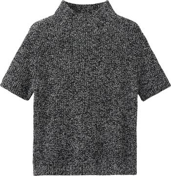 Marled cotton-blend yarns add visual intrigue to this short-sleeve sweater that's a modern look for chilly days.