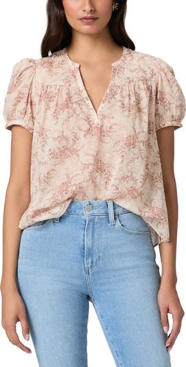 Airy cotton brings a lightweight feel to this charming floral top finished with a split neckline and gently gathered short sleeves.