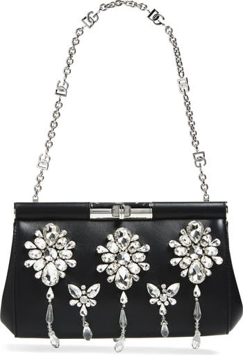 The iconic interlocking D&G monogram makes an understated appearance on the gleaming chain strap of a lambskin-leather shoulder bag detailed with a faceted-crystal blossoms and butterflies.