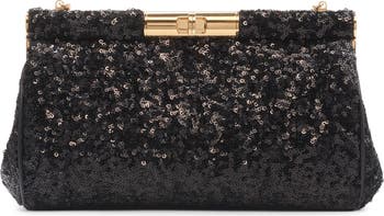 The iconic interlocking D&G monogram makes an understated appearance interspersed along the gleaming chain strap of a sequin-encrusted shoulder bag.