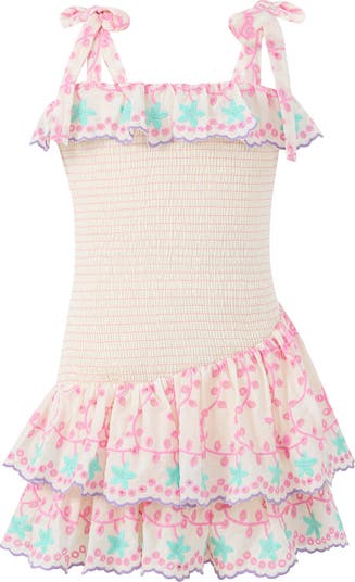 The Alanna Shirred Embroidered Mini Dress is a playful yet elegant piece designed to move beautifully with her. Featuring a shirred bodice and layered embroidered skirt, this dress is perfect for parties, celebrations, or dressing up just because.