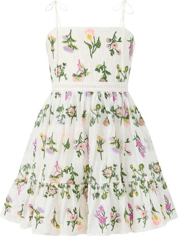 The Emely Embroidered Mini Dress is a sweet and feminine style designed for sunny celebrations. Featuring the same delicate floral embroidery as the maxi, this mini version offers a playful silhouette while still feeling polished and special.