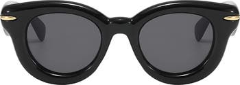 Signature logos mark the angular temples on retro-cool round sunnies fitted with glare-reducing polarized lenses.