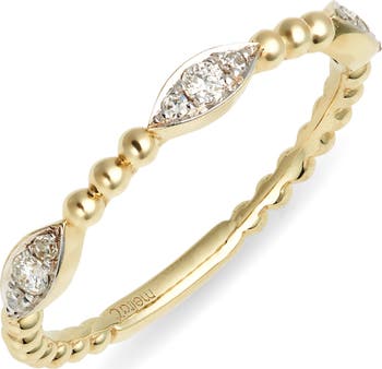 An elegant array of marquise-cut diamonds defines a slender ring that works well as part of a stack or shining solo.