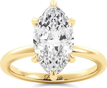 This elegant marquise lab diamond engagement ring features a sparkly hidden halo on a simple, classic band. Capture her heart with a timeless marquise engagement ring design that is minimal and classy