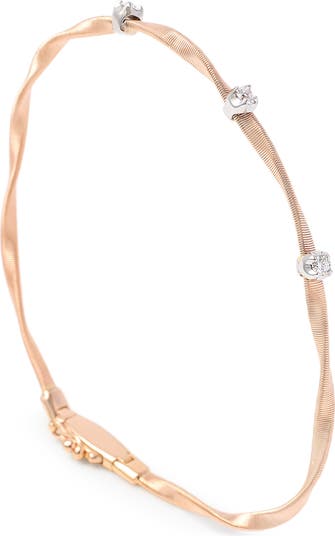 A fluid design brings textural intrigue to this coil bracelet made from polished 18-karat gold and illuminated by icy diamond stations.
