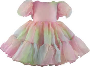Fluffy and enchanting dress inspired by the whimsical colors of marshmallows. Puff sleeves add a touch of fairy-tale elegance. Multi-layered skirt with pastel hues creates a dreamy and voluminous effect. Perfect for special occasions, photoshoots, and princess-themed parties.