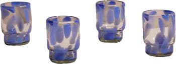 Short Clear and Blue Glass, Set of Four, Mouthblown in Mexico.