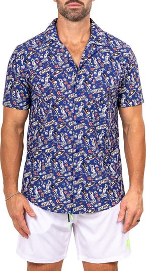 Make a statement in a bold camp shirt crafted from a soft, drapey fabric in a regular fit with a head-turning pattern the brand is known for.