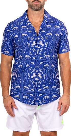 Make a statement in a bold camp shirt crafted from a soft, drapey fabric in a regular fit with a head-turning pattern the brand is known for.