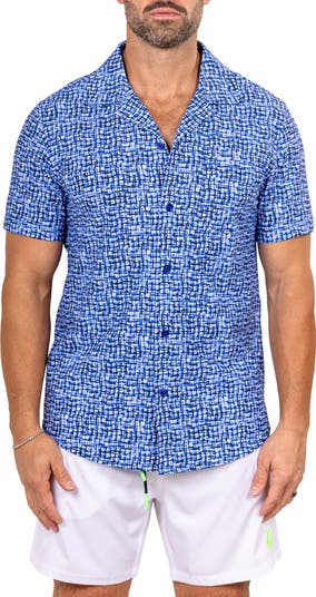 Make a statement in a bold camp shirt crafted from a soft, drapey fabric in a regular fit with a head-turning pattern the brand is known for.