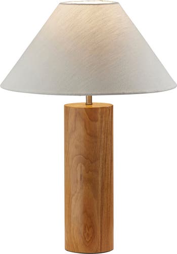 Crafted of natural oak wood with a touch of antique brass metal in a retro-inspired shape, this lamp will add a classy touch of modern styling to your home.