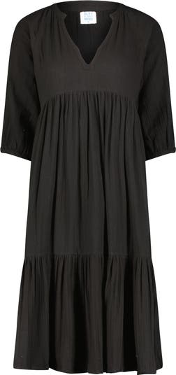 Martine makes day dressing look easy and effortless with its boho-inspired pop over style and peplum hem. V neck, 3/4 baloon sleeves with single button closure.