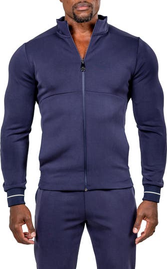 A streamlined zip front and a stretchy knit bring a fitted, performance-driven feel to this sweatshirt.