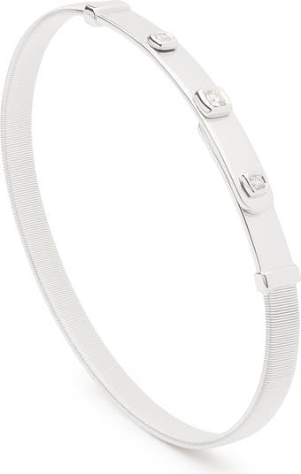 A soft and sinuous coil adds subtle texture to this luxurious bangle handcrafted from 18-karat gold and topped with a trio of diamonds.