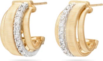 Signature coils bring fine texture to layered hoop earrings that up the luxe with lines of diamonds.