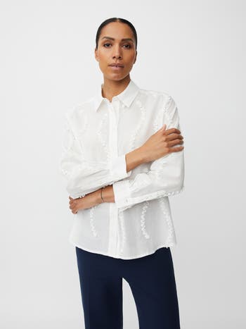 Cotton shirt adorned with beautiful details that add a unique texture. The soft cotton makes the shirt light and it also features a flattering A-shape, long sleeves, and is slightly longer at the back.