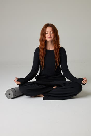 - Long sleeves with thumbholes, Deep side-seam pockets