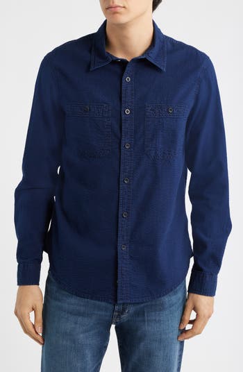 Perfectly rumpled cotton seersucker keeps you laid-back and relaxed in an off-duty shirt topped with a pointed collar to ensure you're always presentable. Wear it buttoned, open, tucked or untucked to change up your look without losing your comfort.