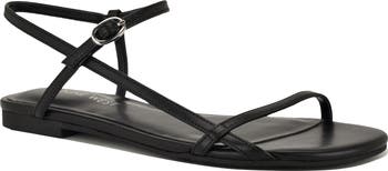 Minimalist stripes give an understated silhouette to a goes-with-anything sandal set on a padded footbed.