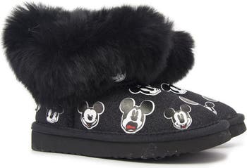 The Faux Fur Mickey Boots features all over Mickey facial expression prints with faux fur lining. Perfect for the cold weather.