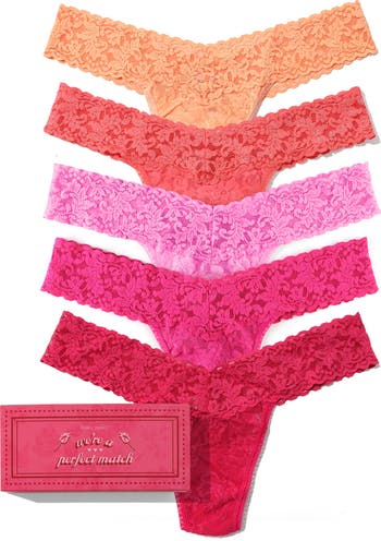 A sweet gift for yourself or someone else, these low-rise thongs made from stretchy lace are designed to feel great on and disappear beneath clothing.