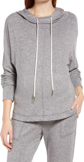 A supersoft and stretchy knit comfortably skims over your baby bump in a casual-day pullover with an adjustable drawstring hood.