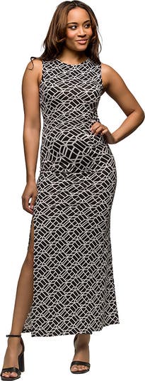 Maternity Black and White Print Sleeveless Side Slit Maxi Dress