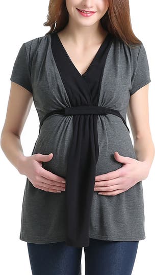 Designed for both style and functionality, the Maternity Colorblock Nursing Top offers a flattering silhouette that adapts beautifully throughout pregnancy and into postpartum. The wrap-style V-neckline provides discreet nursing access, while the empire waist and flowing tunic shape create a comfortable, bump-friendly fit. A contrasting colorblock panel and adjustable waist tie add modern style and definition, making this top easy to dress up or down. Crafted from soft, stretchy fabric, this maternity essential delivers all-day comfort while maintaining a polished, feminine look. Perfect for everyday wear, work, or casual outings, it’s a versatile staple designed to support you through every stage of motherhood.
