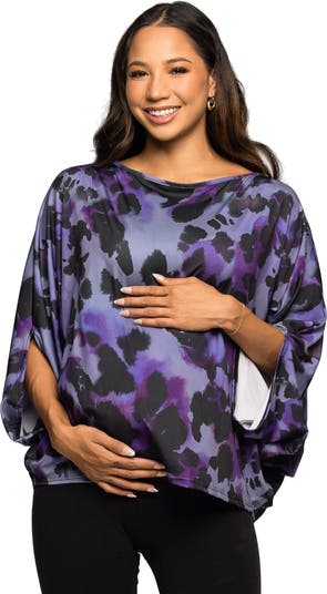 Make a bold style statement with this Purple Animal Print Boat Neck Batwing Sleeve maternity Top. Featuring dramatic batwing sleeves and a relaxed fit, this top combines comfort with modern flair. The boat neckline offers a sophisticated touch, while the vibrant purple and black print adds personality to any outfit. Perfect for pairing with skinny jeans or skirts, this top transitions easily from casual to dressy occasions. Made from a comfortable polyester blend, it’s soft, breathable, and easy to wear all day long.