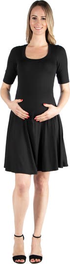 This simple but elegant a line maternity dress is a must have in any closet. Featuring elbow length sleeves, slim fit waistline, scoop neckline and soft flare hemline, this maternity dress offers a comfortable fit for all silhouettes. Easy to dress up or down or to layer with, this is a versatile and timeless piece for every season. Made from a comfortable stretch material. rayon spandex blend.