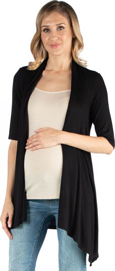 This cardigan features a cascading open front with loose fit designed for a comfortable but trendy and fashion forward look. The half sleeves make this piece perfect to wear in all seasons and easy to dress up or down for a day in the office or an evening out. Made from a comfortable stretch material. Rayon Spandex Knit.
