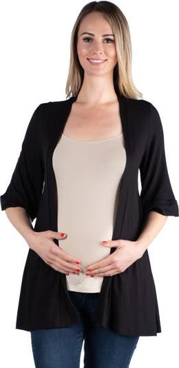 Maternity Open Front Elbow Length Sleeve Cardigan