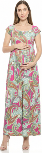 Elevate your wardrobe with this maternity hot pink paisley print maxi dress from 24seven Comfort Apparel, designed with a flattering square neckline and cap sleeves for airy elegance. The fitted waist flows into a pleated A line skirt for effortless movement. Perfect for brunch or evening strolls, pair with strappy sandals or wedges. Machine washable and tumble dry for easy care.