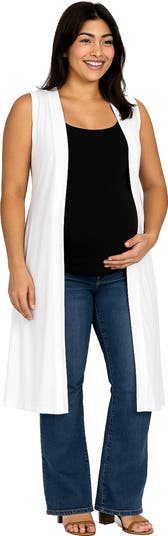 Maternity Sleeveless Long Cardigan with Side Slit