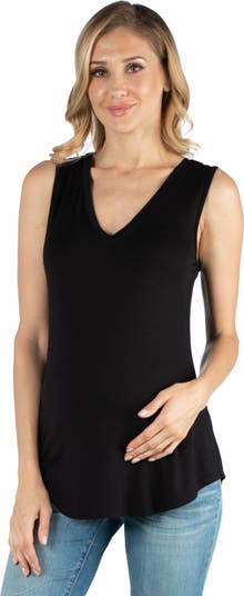 Maternity V-Neck Tunic Tank Top with Round Hemline
