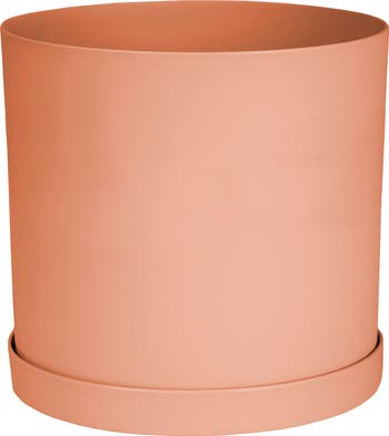 MATHERS COLLECTION by Bloem: Add a touch of modern décor to your home or office with this charming planter. The simple modern round shape and matte finish complements any décor. Mathers planters feature a thick wall design and are great for adding a pre-planted grower pot or planting directly inside the planter. The pot is crafted from polypropylene, so it is durable and can be used both inside and outside no matter the weather. The planter includes pre-drilled drainage holes and a matching snap on saucer to prevent water damage indoors. This contemporary and modern plastic planter is weather-resistant & UV-protected for fade resistance. Made in USA.
