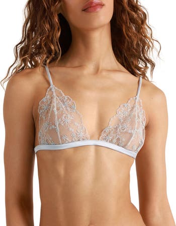 The Mathilde Group features delicate French embroidery in a soft pearl grey, accented with the faintest light blue floral details—your perfect "something blue." The Mathilde Embroidery Soft Cup features delicate adjustable silk straps for a custom fit. Complete the look with our Mathilde G-String or Panty.