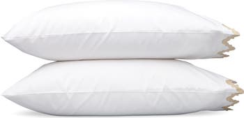 Drawing inspiration from the breathtaking geometry of Moroccan tiles, these fresh cotton-percale pillowcases are trimmed with boldly contrasting zigzag appliquès cut from the brand's Nocturne sateen.