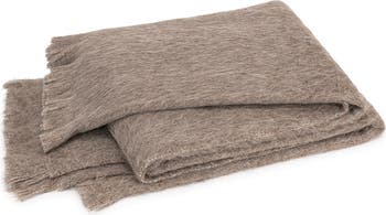 Gentle fringe edges a decadent throw blanket woven from a soft and fuzzy blend of Suri alpaca and merino wool.