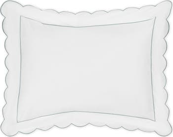 A crisp sham made from Egyptian cotton percale is set off with a duo of satin-stitched stripes and scalloped detail for a refined finishing touch.